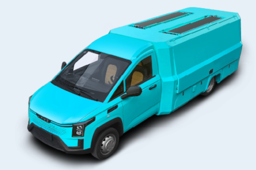 商户可通过APP远程控制车辆展开至9㎡营业空间,顶棚LED屏同步播放促销视频,适配展会、夜市等场景。