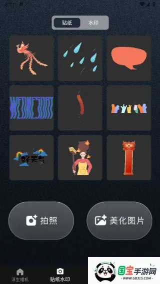 3.在贴纸水印页面中提供了多种贴纸和水印,可以随时进行拍照和美化图片。