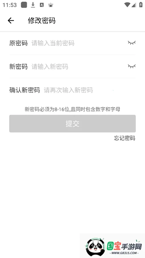 4、正确输入原密码,再重复输入新密码后点击提交按钮即可。