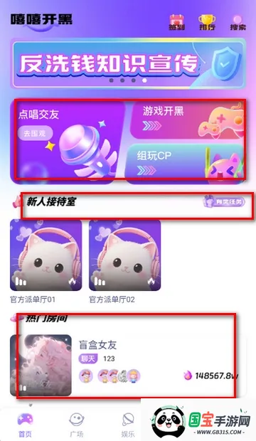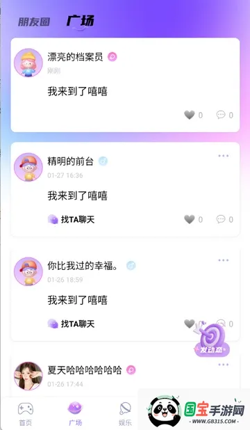 5、点击娱乐页面,可以跟大家一起聊天玩游戏等