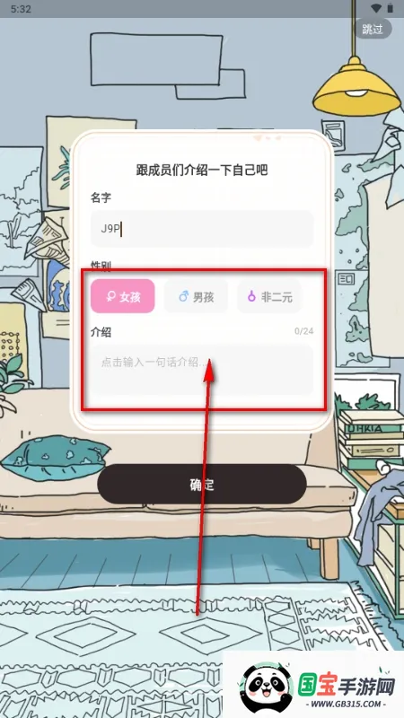 3、点击选择创建我们的OC角色,输入姓名,性别以及个人介绍;