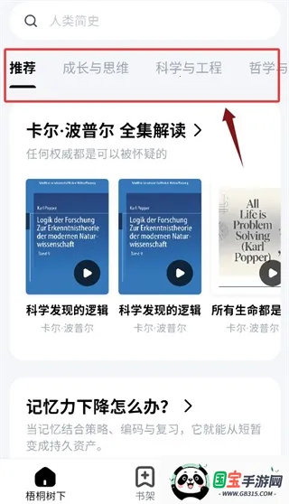 2、在首页的栏目提供了推荐、成长思维与科学工程等分类;