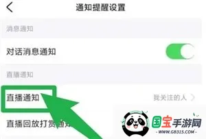 接着,在列表中找到并点击【直播通知】。