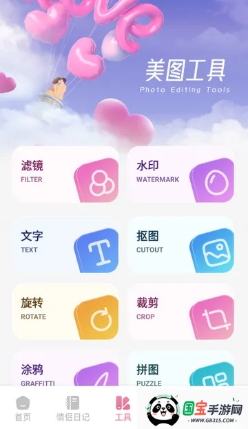 4、点击工具,可对照片等进行编辑、剪辑等