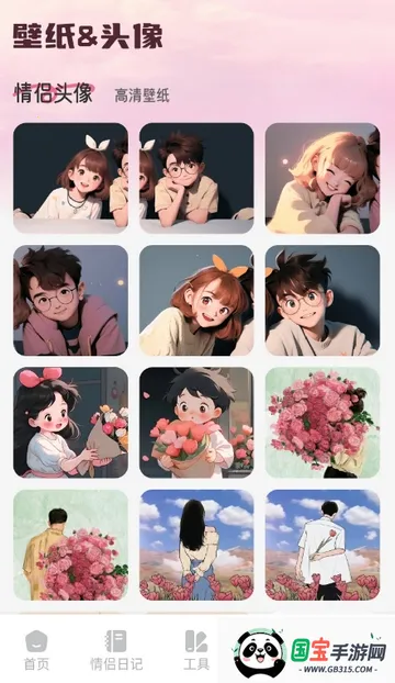 5、点击壁纸,可保留喜欢的情侣头像、高清壁纸等