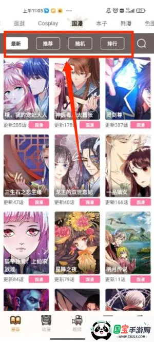1、启动应用进入主界面,可选择最新或推荐等栏目浏览作品。