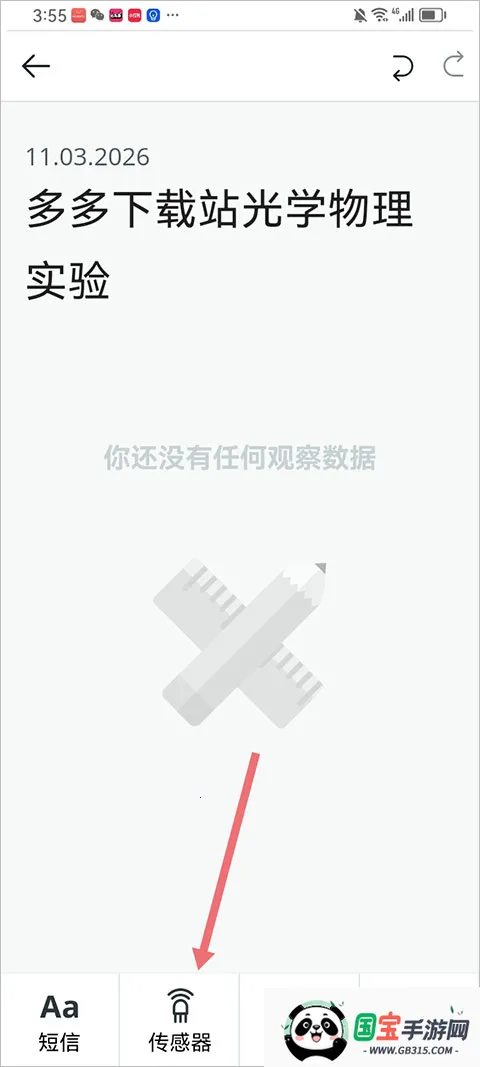 打开科学日志App后,点击右下角的“+”号 创建一个新项目。你可以为实验命名(例如“研究电梯里的重力变化”),这是你存放所有数据、照片和笔记的数字笔记本。