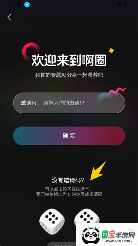 1、打开登录app后填写邀请码,如果没有可以通过掷骰子来获取邀请码