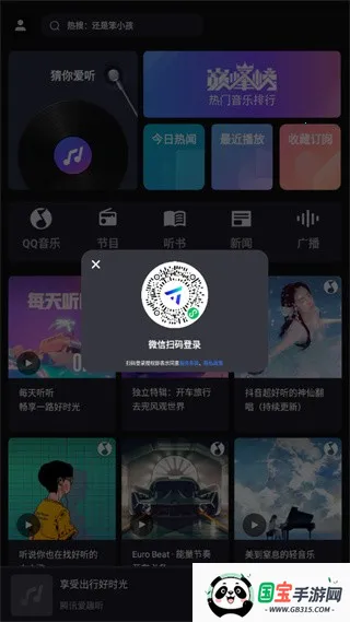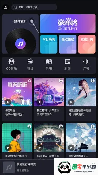 1、下载安装完成后即可运行打开使用,在主界面中即可看到提供了QQ音乐、科目、听书、新闻、广播等功能;