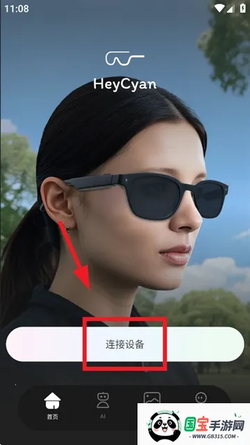 下载安装并打开heycyan智能眼镜app,进入首页后点击连接设备