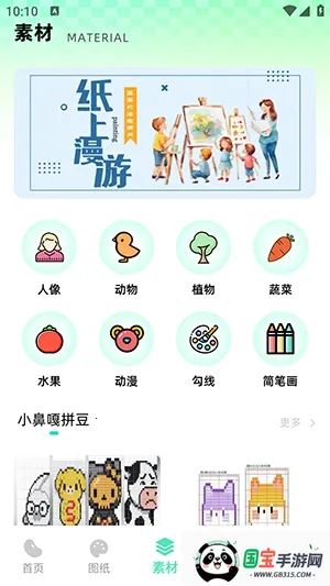3、进入素材页面,这里为大家提供了人像、动物、植物、蔬菜等超多拼豆素材可以使用。