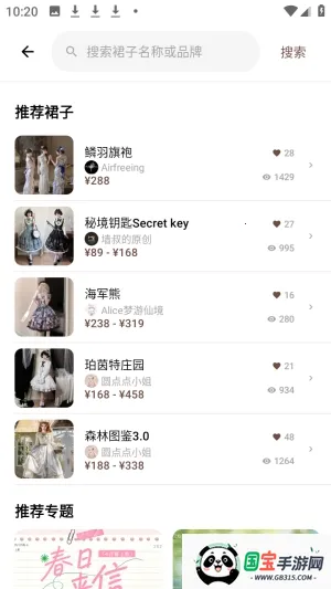 2、用户可以通过搜索裙子的品牌名或者类型进行查看。
