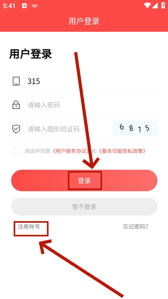 输入你的信息勾选协议点击登录,如果没有账号就点击注册进行注册登录
