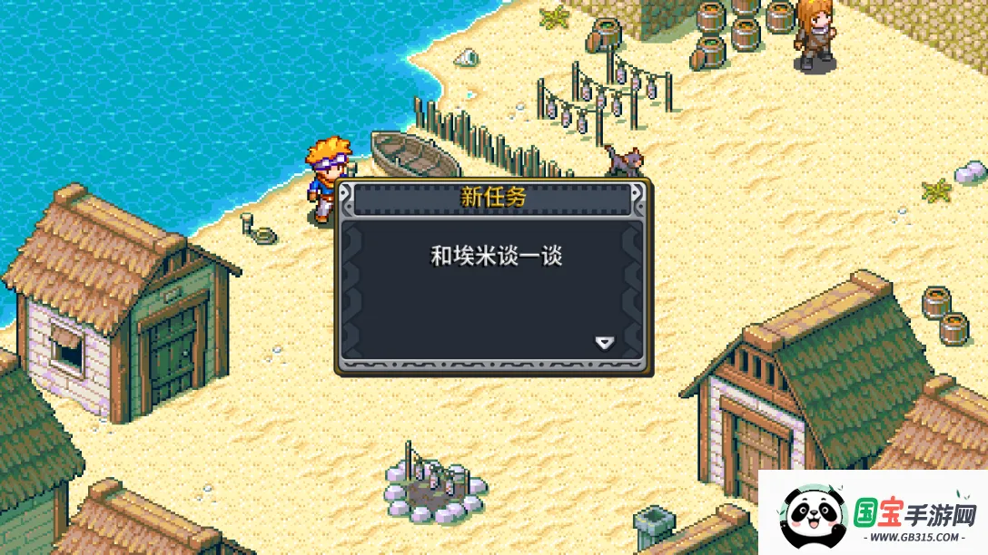 4、正式进入游戏以后,爷爷会交给角色一个任务,那就是去海边修筑围墙,并带上埃米,因此会获得一个新任务;