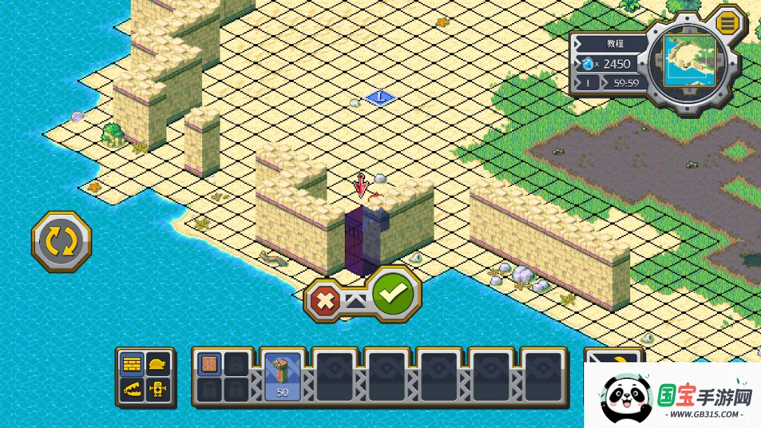 8、如果点击【√】没有反应,那就意味着没有放好,可以点击左方的按钮对围墙进行旋转,然后再点击【√】;