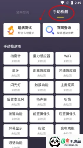 1、下载安装软件,可通过全面检测以及手动检测两种模式检查手机
