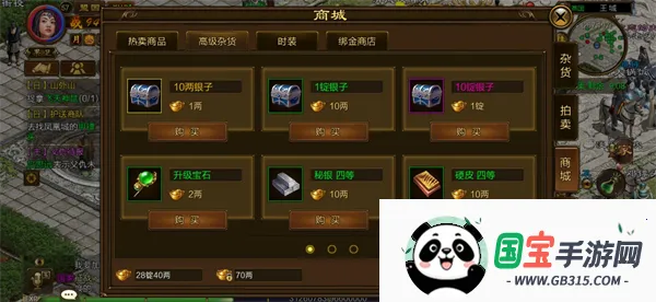 商城有出售升级宝石、硬皮、秘银,只要花费金子就能购买,也可在绑金商店使用绑定金子购买秘银、硬皮。每周商城还会退出限购礼包,可根据自己的策略购买礼包哦!