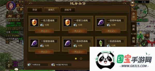 随身商店会出售魂魄石,绑定银两就能购买。根据自己的喜好选择要购买的魂魄石,魂魄石的合成基数为5个,根据你预计达到的魂魄石等级,以及当前的魂魄石剩余数量来考虑具体的购买数量哦。