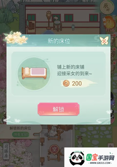 玩家点击床铺区域加号就可以新建一个床铺,迎接采女的到来。