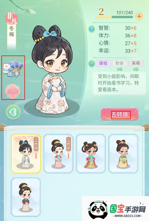 1、完成采女选拔后就会变为宫女,玩家在宫女页面可以查看其信息,还有专属故事以及立绘可以查看。
