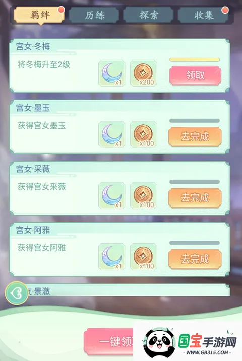 玩家通过选拔、升级宫女、解锁故事羁绊等可以解锁羁绊成就,领取丰富成就奖励。