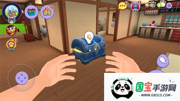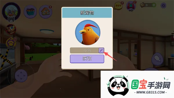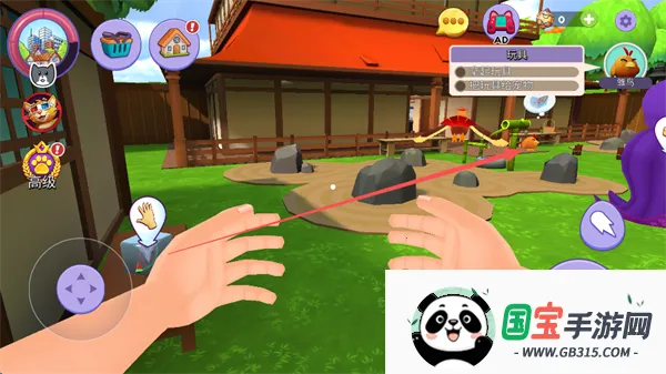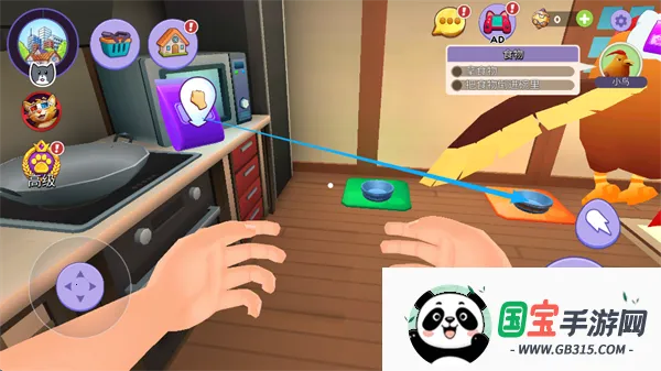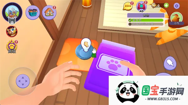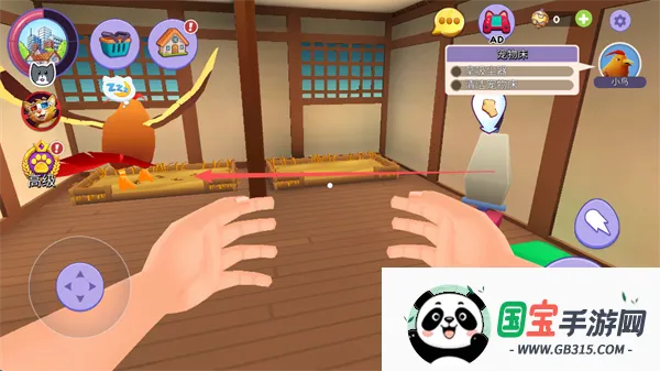 7、将视角对准宠物的“饭碗”,点击屏幕右下角的“小手标识”即可投喂。