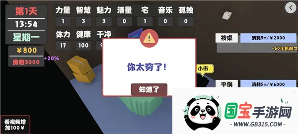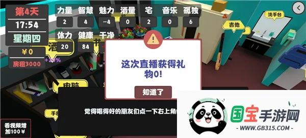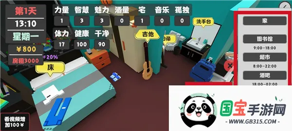 教程攻略也贴心,下载安装打开游戏,从房东对话开始,房间能看详细信息。看书能提升属性,不同书效果不同。出门可去超市等地方,和 NPC 对话超有意思。没钱时系统会提醒,还能回家直播积累经验。
