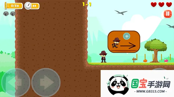 3、在悬空障碍物面前则按住右箭头同时,连续按两次按键来操控角色跳跃过去
