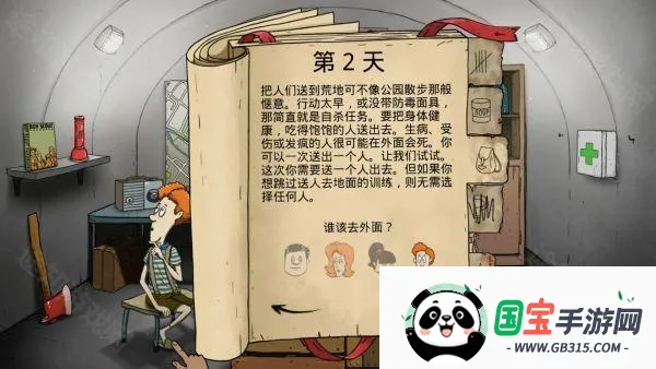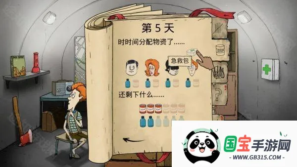 1、物资差不多2水1食物,前期要派(卖)一个人去找物资,注意不要让这个人生病,不然后面会很不好过