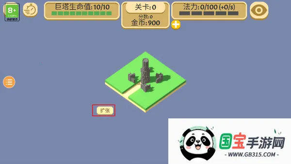 3、游戏的开始就是一个小小的板块,你需要点击“扩张”按键来扩大地图的面积。