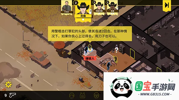 9、使用警棍击打罪犯的头部,可以让他昏迷2回合,趁现在,我们对他选择使用警棍,