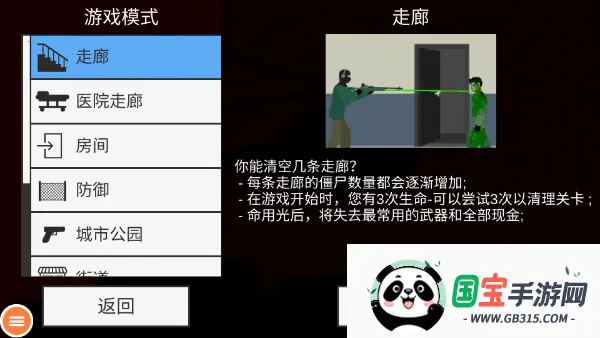 3、进入游戏后点击屏幕射击,射击僵尸身体的不同位置伤害和所得金钱是不一样的,射击头部伤害和金钱是最高的。
