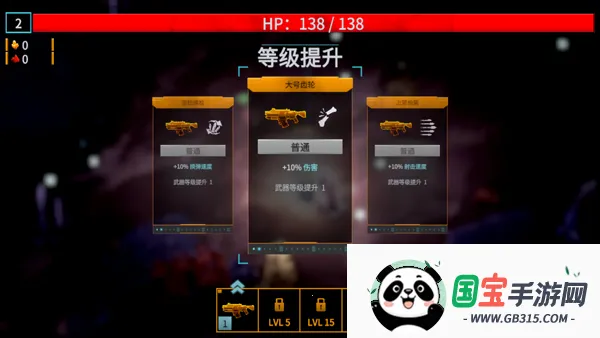 5、游戏采用自动射击,玩家消灭异虫会获取经验,每次升级可选择一项强化;