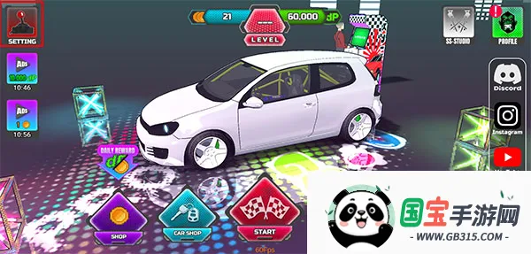 1、打开项目漂移2.0游戏,点击左上角“setting”;