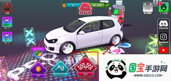 1、打开项目漂移2.0最新版,进入游戏后,点击屏幕中间的开始按钮;