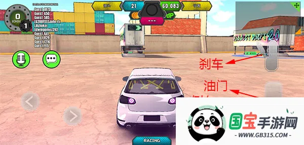 4、等待一会加载,进入游戏如图,屏幕左边控制方向,右边刹车,油门,倒车;