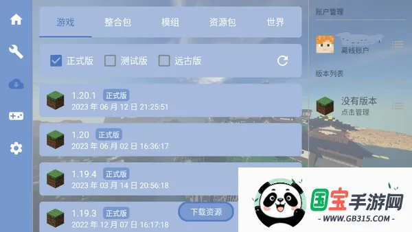 2、账号创建成功后,要选择游戏栏,在这里下载游戏本体,从1.0到最新版本都有,大家可以自行选择。